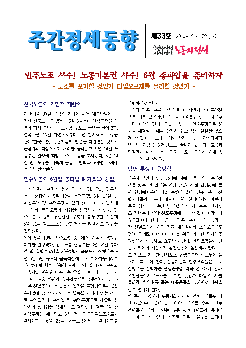 ³ëµ¿Àü¼± ÁÖ°£Á¤¼¼µ¿Çâ 33È£(2010.5.17)