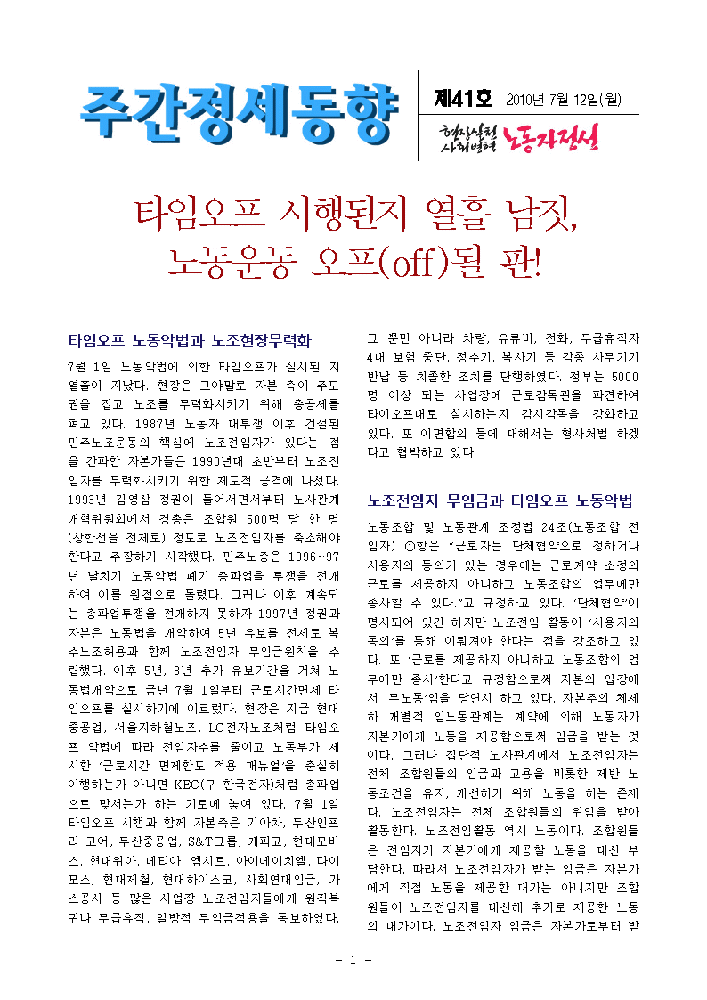 ³ëµ¿Àü¼± ÁÖ°£Á¤¼¼µ¿Çâ 41È£(2010.7.12)