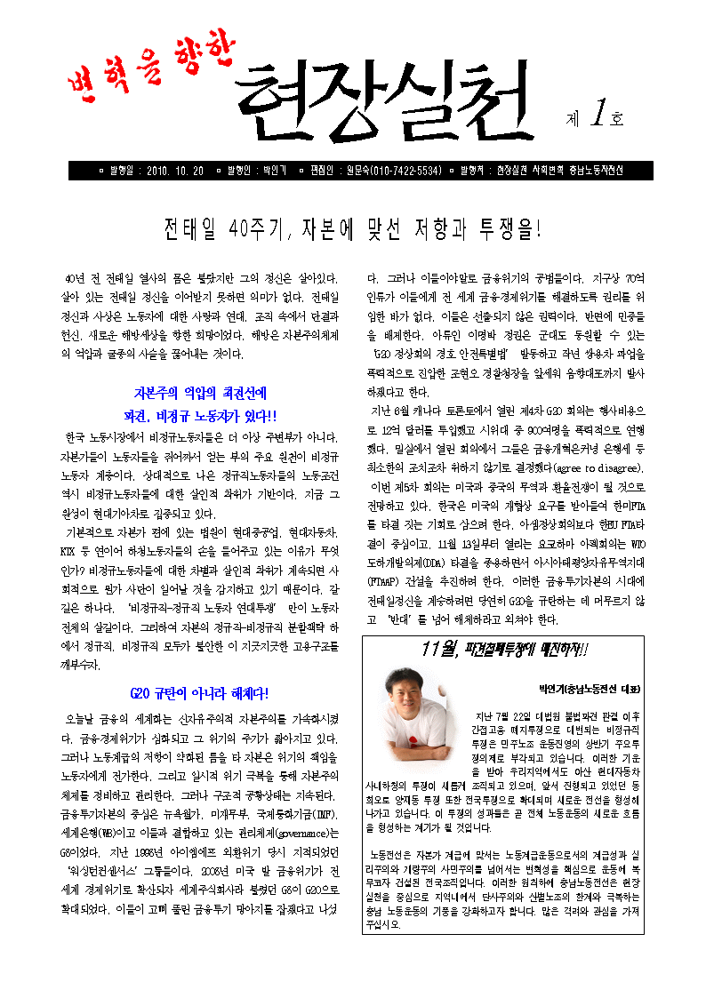 Ãæ³²³ëµ¿Àü¼±¼Ò½Ä : 'º¯ÇõÀ» À§ÇÑ ÇöÀå½Çõ' 1È£